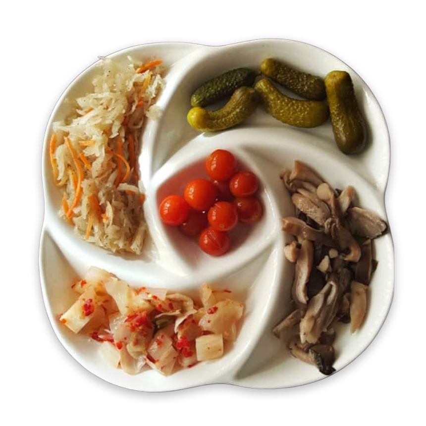 Состав: корнишоны, черри, чим-чи, маринованные грибы, капуста квашеная.