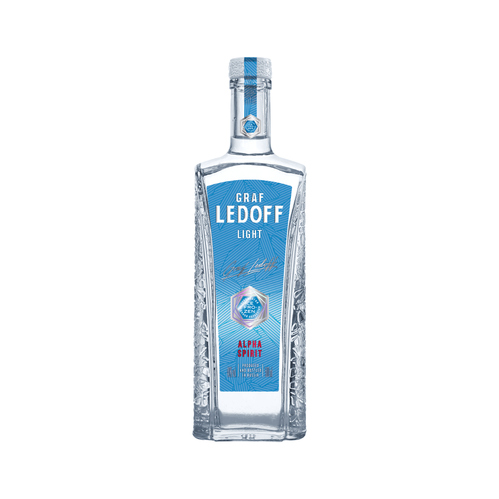 Водка GRAF LEDOFF LIGHT приготовлена из спирта категории «Альфа». Особое внимание к этапам производства является основой для получения продукта высочайшего качества и чистоты. При производстве водки применяется уникальная технология подготовки воды — «ледяная обработка». Охлаждение воды перед смешиванием со спиртом препятствует образованию вредных примесей, вследствие чего напиток приобретает кристальную чистоту и получает особый мягкий вкус. В состав водки Graf Ledoff Light входит настой мяты перечной, подчеркивающий благородный и свежий вкус продукта. Для водок и настоек Graf Ledoff разработана оригинальная бутылка с надписями LEDOFF в стекле по бокам и особой формой донышка в виде кристалла льда.