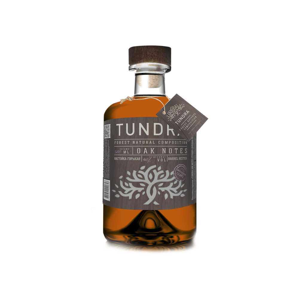 Настойка горькая TUNDRA FOREST «Дубовая выдержка» транслирует идею чистоты и экологичности изготовления исключительно из натуральных сырьевых компонентов, представляя собой уникальное сочетание крафтового дизайна, оформленного с использованием ручного труда, и натуральной рецептуры, отличающейся сочетанием настоя высококачественного черного байхового крупнолистового чая, выдержанного в прямом контакте с дубом, и купажа из 5 видов натуральных ботаникалов, в полной мере раскрывающих поистине богатый и плотный вкус напитка. Особые физико-химические процессы взаимодействия жидкости и древесины формирует уникальный по своим вкусовым качествам благородный напиток, а присутствующий в древесине танин убирает из него вредные соединения.
